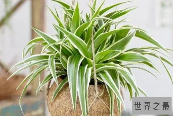 吊兰也是原产于南非的一种草本观赏植物,其叶片形状细长,叶片中间还会有黄色或者绿色的条纹,吊兰具有极强的净化空气作用,是吸收甲醛最佳的十种植物之一。