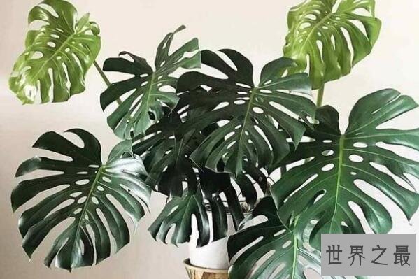 龟背竹是原产于墨西哥的一种热带植物,在我国福建、广东、云南等很多地区也有栽培,其叶形奇特,和龟背相似,而且叶片常年碧绿,非常耐阴,是很适合客厅摆放的观赏植物。