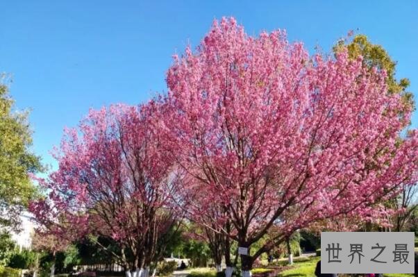 冬樱花这种树高在3至10米之间的蔷薇科樱属落叶乔木植物,是广泛分布在中国各地,会在每年10至翌年1月间开出红色花朵的植物,因其较强的抗污染能力和观赏价值而成为较好的城市绿化和园林风景树。