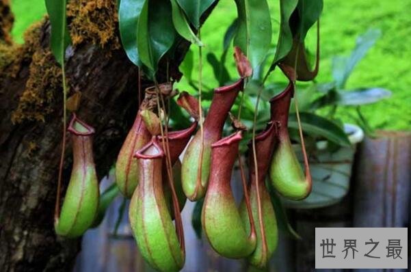 猪笼草这个有着独特捕虫笼的热带食虫植物,因这个瓶盖复面可分泌香味而可用于引诱昆虫,其中可以吸取营养的器官类似于猪笼而得名,目前这种植物的园艺品种有超过1000种,其中的优良品种还可用于花卉展览。